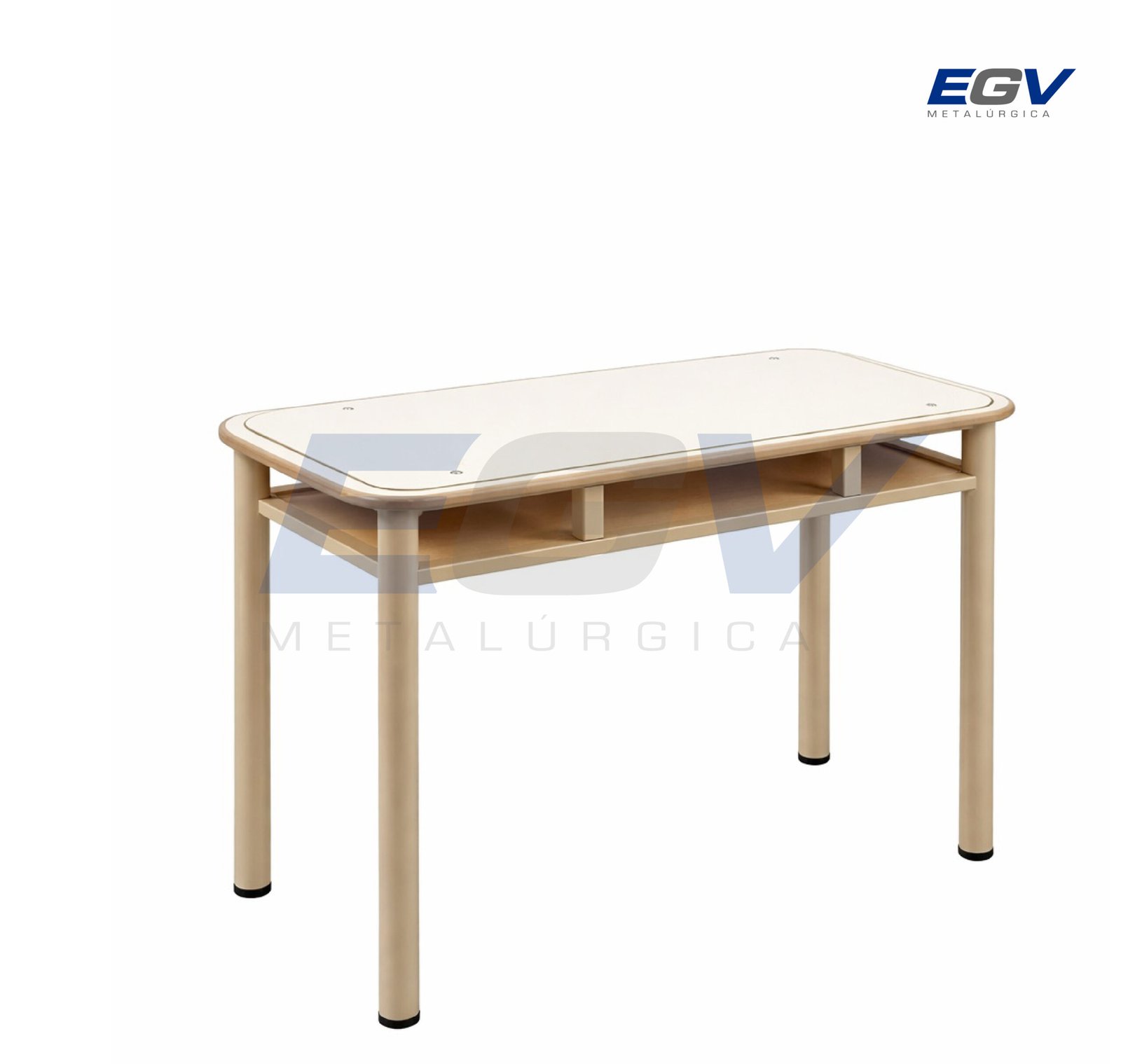 Mesa EGV unipersonal con aro antigolpe 0.60m x 0.40m x 0.70m/0.75m con porta útiles en MDF